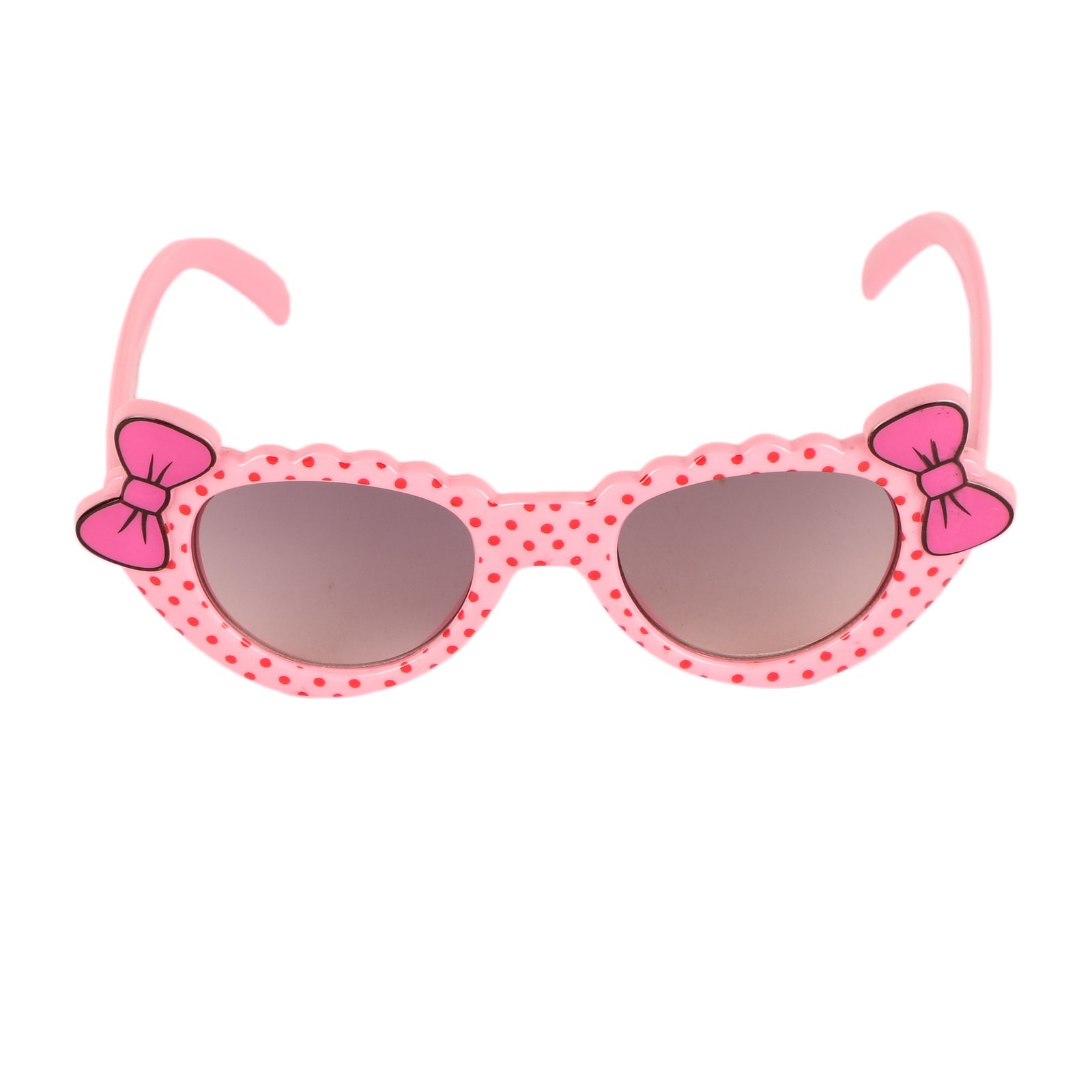 Appease the fashionista in your little angel by getting this pair of pink and red framed cat eye sunglasses from the house of Amour. As these sunglasses are manufactured using optimum quality plastic material, they are highly durable and comfortable. This medium sized pair further features polka dot print, purple colored gradient lenses, and full frame.